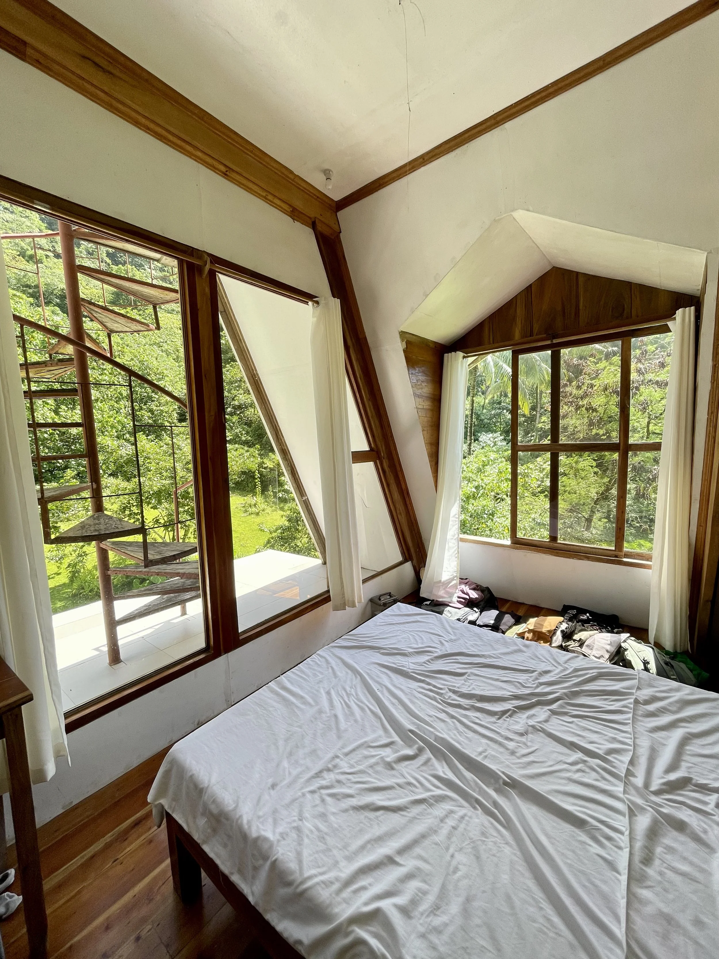 Downstairs bedroom of the A-Frame House at Camiguin Volcano Houses. Small but lovely and cozy.