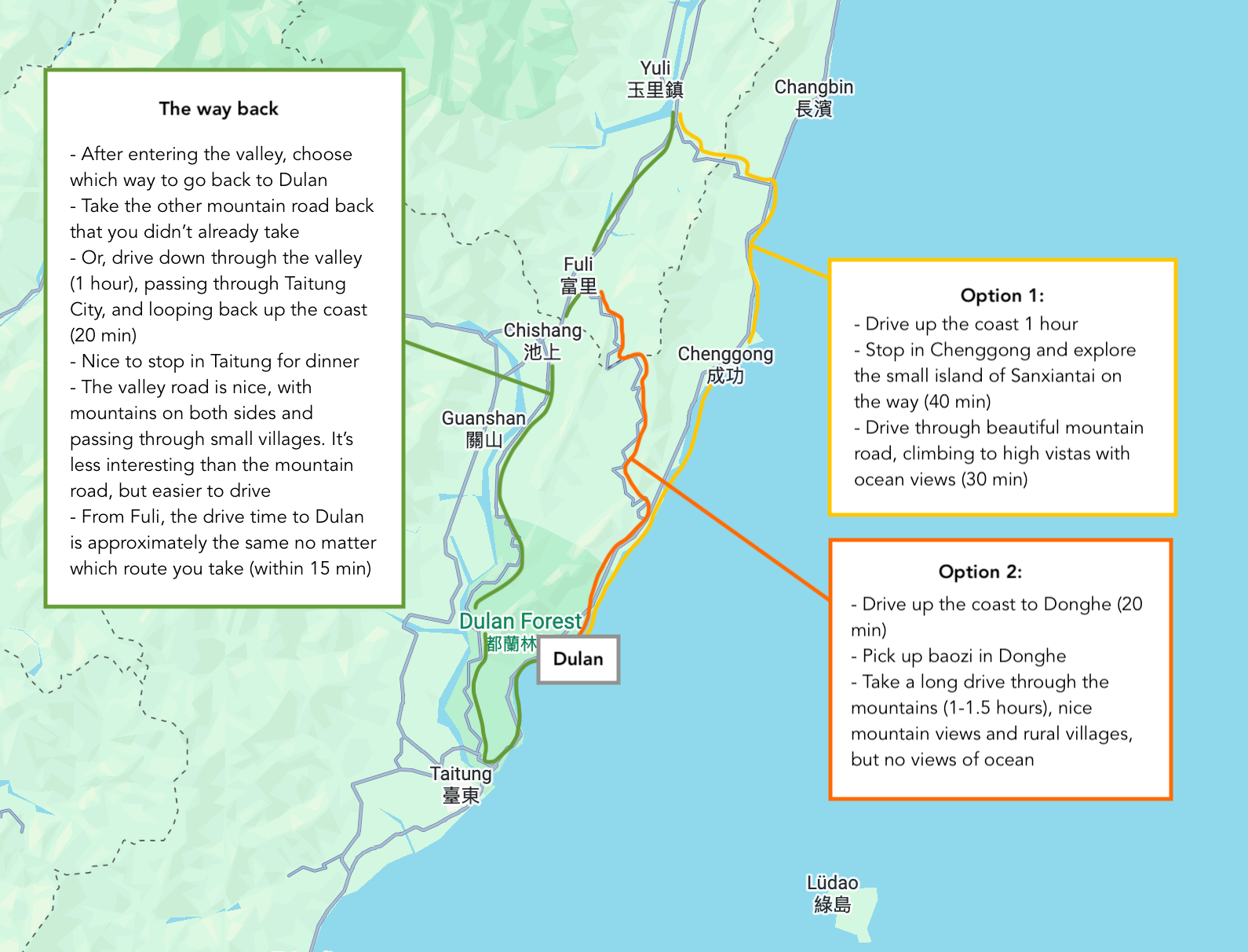 Recommended routes into Taitung valley for a big day trip
