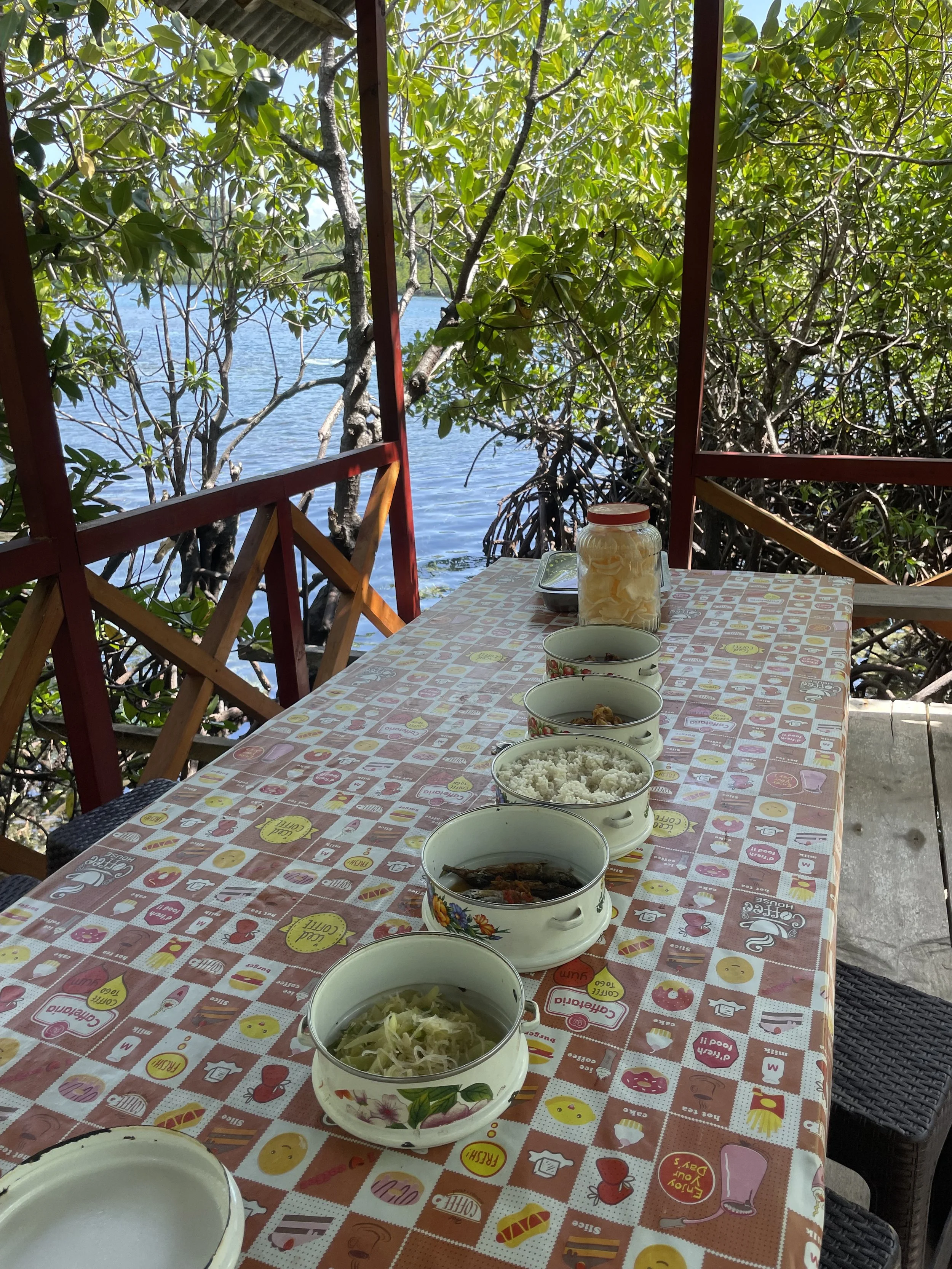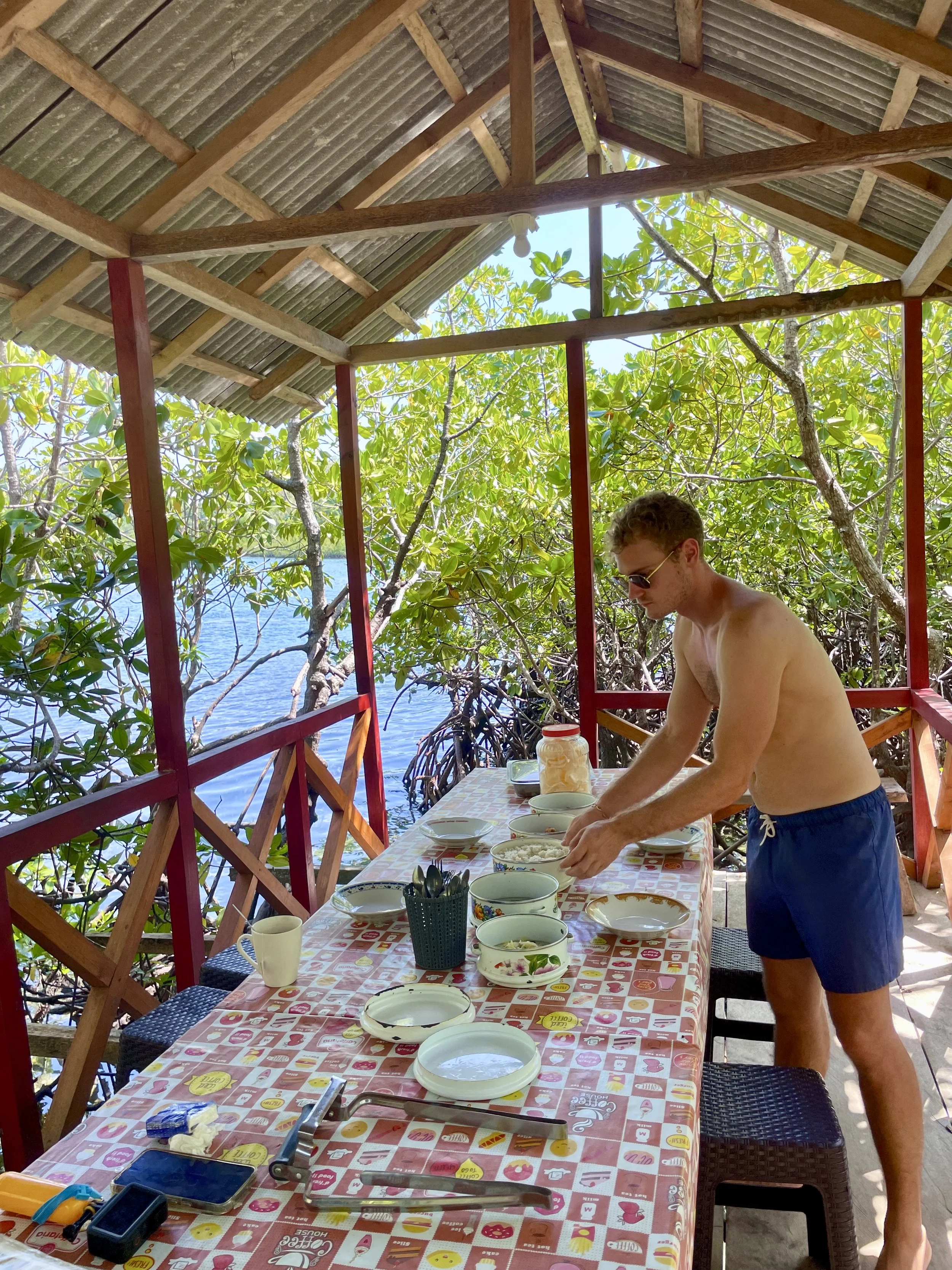 We spent 2 nights there which was good for us, but we also would’ve enjoyed staying 1 more night if we had the time. We spent our days relaxing amongst the mangroves, soaking in the beautiful ocean views surrounding us on all sides, snorkeling, swimming, and enjoying meals with others staying with us. It’s a very simple, rustic life, but a nice and unique experience to be disconnected from everything and just enjoying the pure nature. If you want luxury, this stay won’t be for you. But if you’re okay without modern conveniences for a few days: think bucket showers, and sleeping in a very warm room, you’ll be in for a very unique treat here.