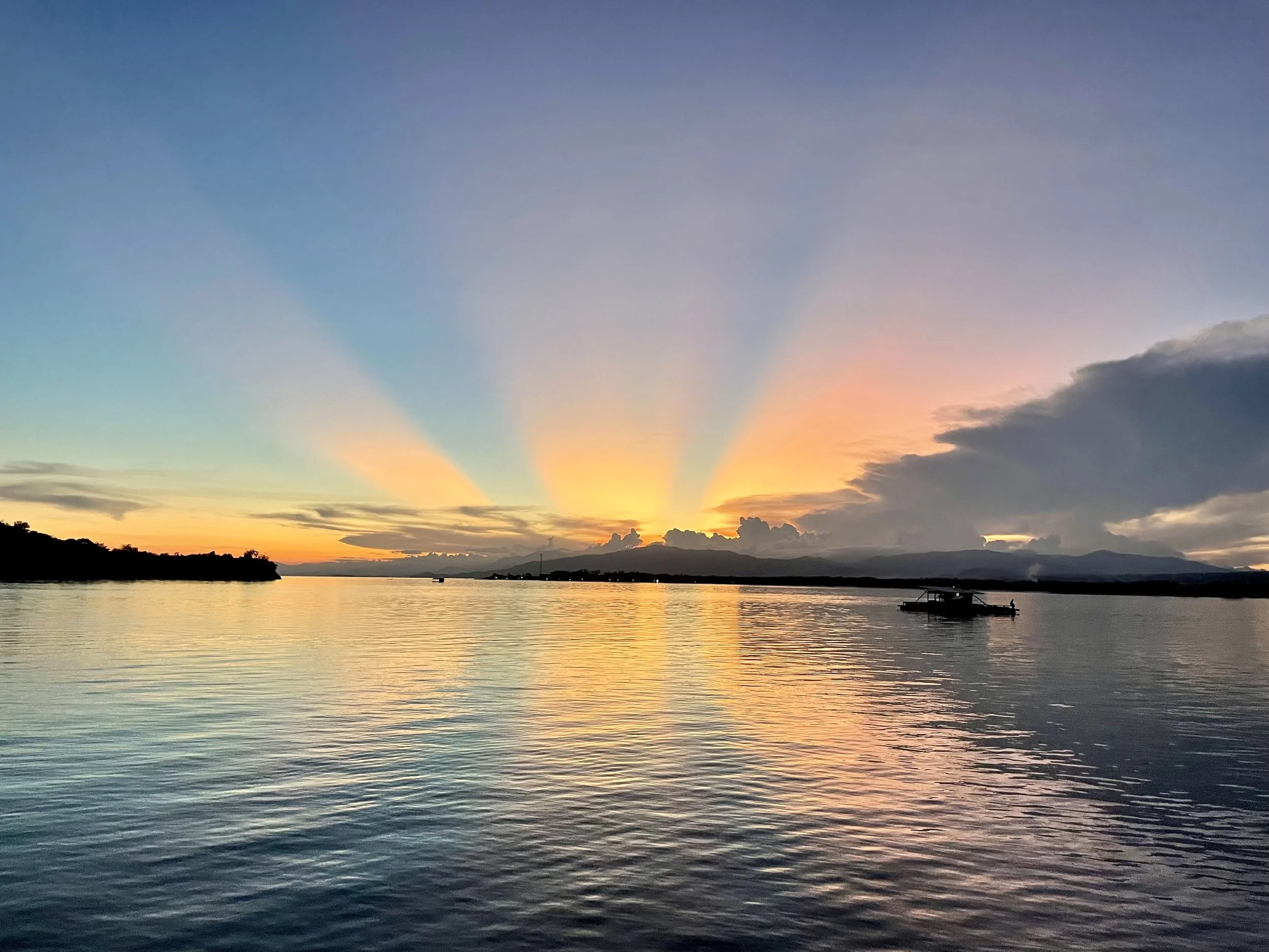 We rented a scooter in Tomohon, and then drove to Tumbak Island. It’s about a 1 hour drive from Tomoho with very nice scenery along the way. When you book a stay at the cottage, the owner will give you a location to meet in the village of Tumbak. From there, they will take you by boat to Tumbak Island, about a 10 minute boat ride.